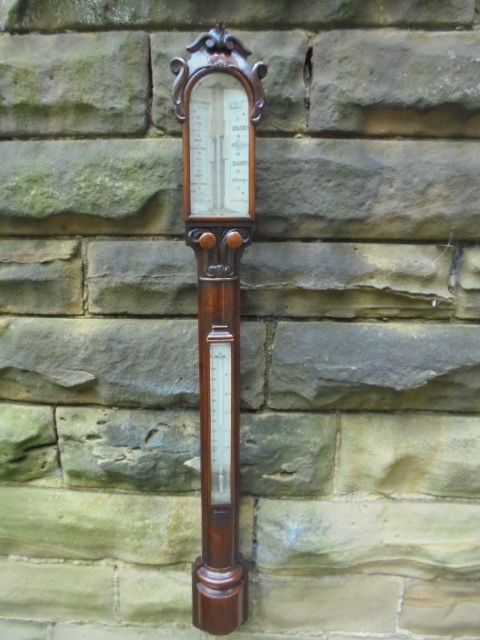 Antique Bow Front Mahogany Stick Barometer Salom & Co London c.1850