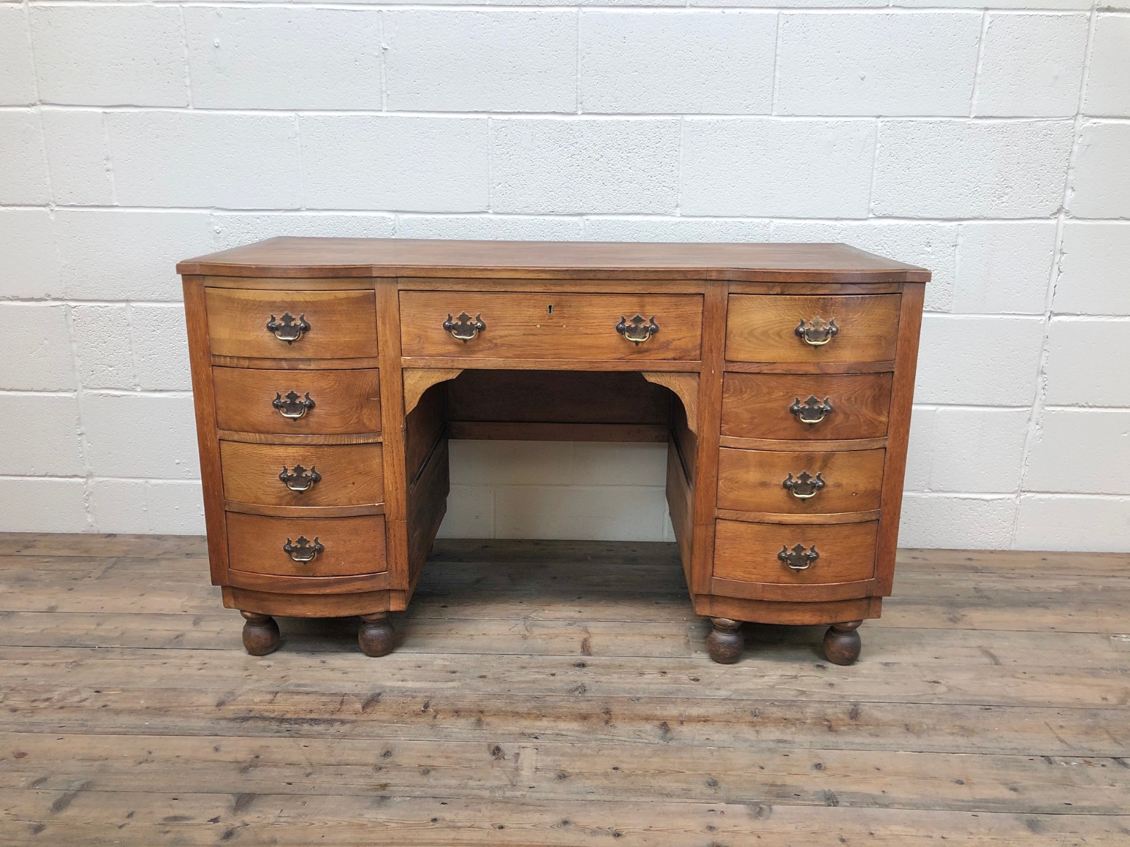 Antique Bow Front Pedestal Kneehole Desk (1 of 1)