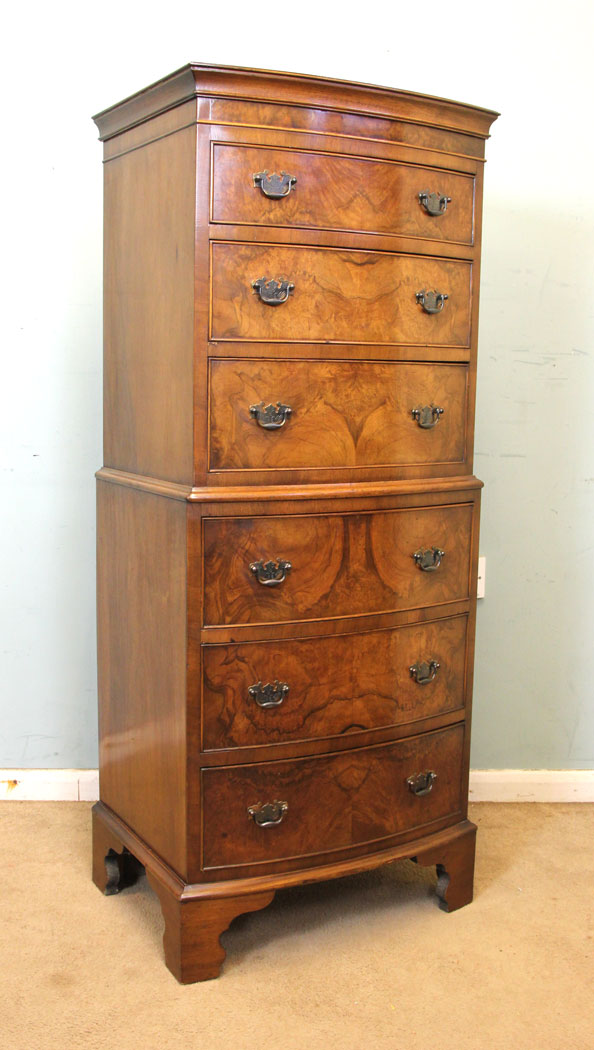 Antique Bow Fronted Burr Walnut Chest On Chest