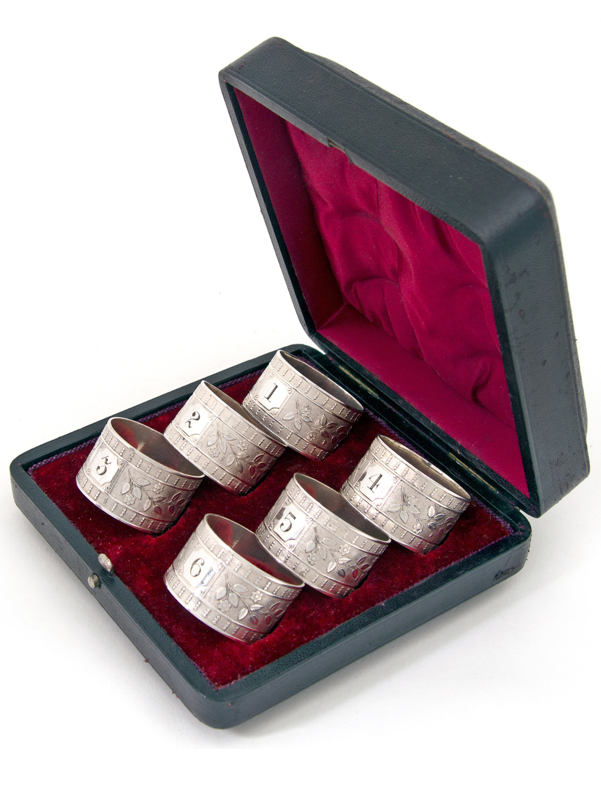 Antique Boxed Set of Six Numbered Napkin Rings (1 of 1)
