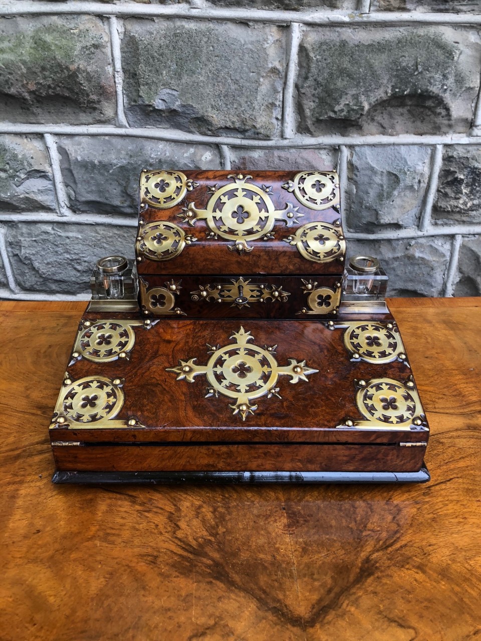 Antique Brass Bound Burr Walnut Writing Box c.1850