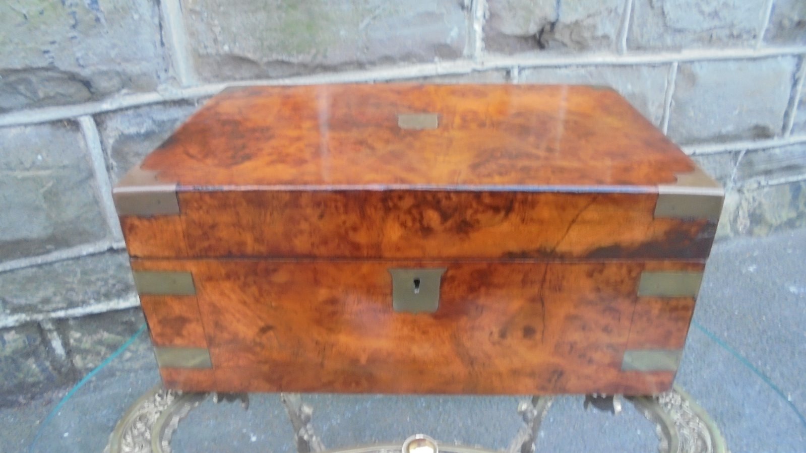 Antique Brass Bound Burr Walnut Writing Slope Box