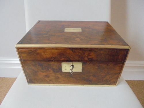 Antique Brass Bound Figured Walnut Writing Slope / Writing Box c.1860