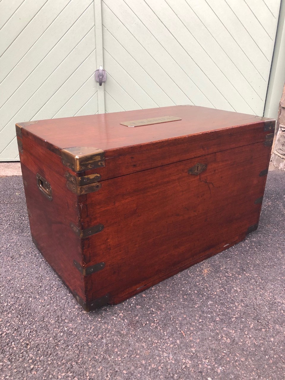 Antique Brass Bound Mahogany Campaign Trunk c.1840