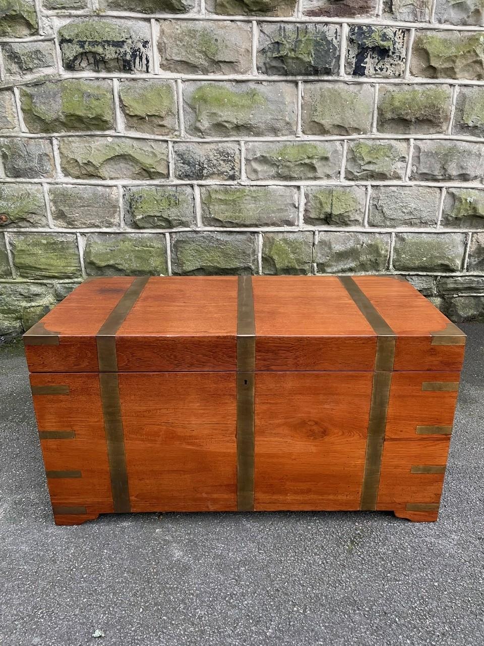 Antique Brass Bound Military Campaign Trunk Blanket Box