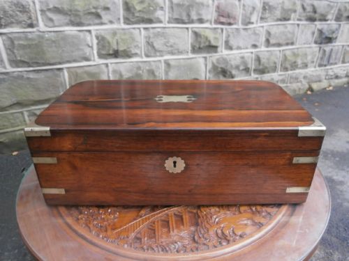 Antique Brass Bound Rosewood Writing Box Writing Slope c.1860