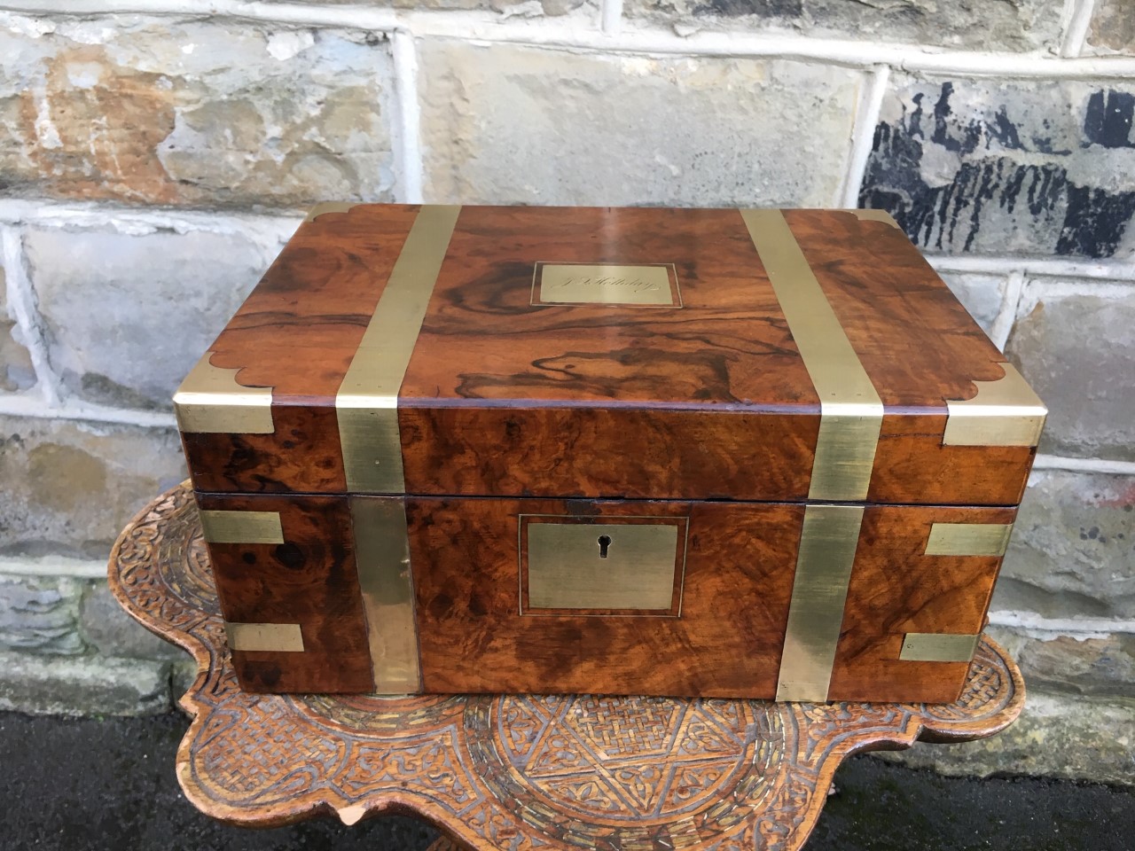 Antique Brass Bound Walnut Writing Box c.1860