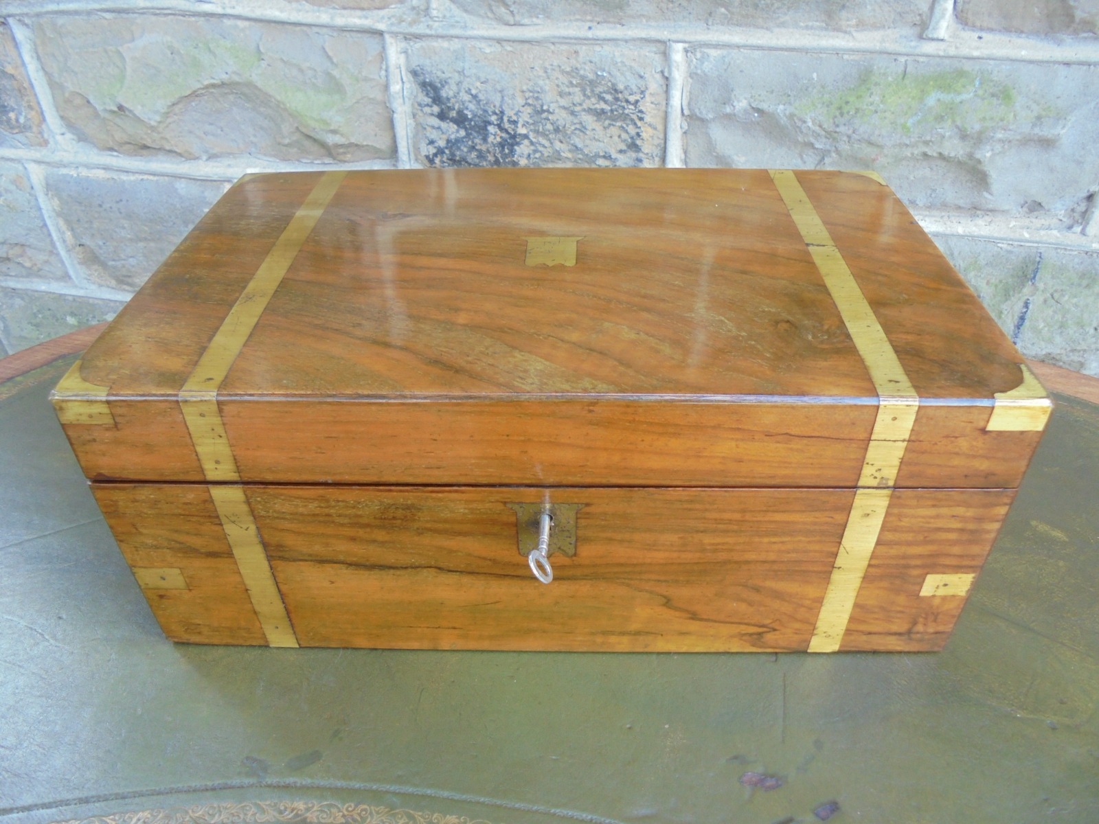 Antique Brass Bound Walnut Writing Slope Box