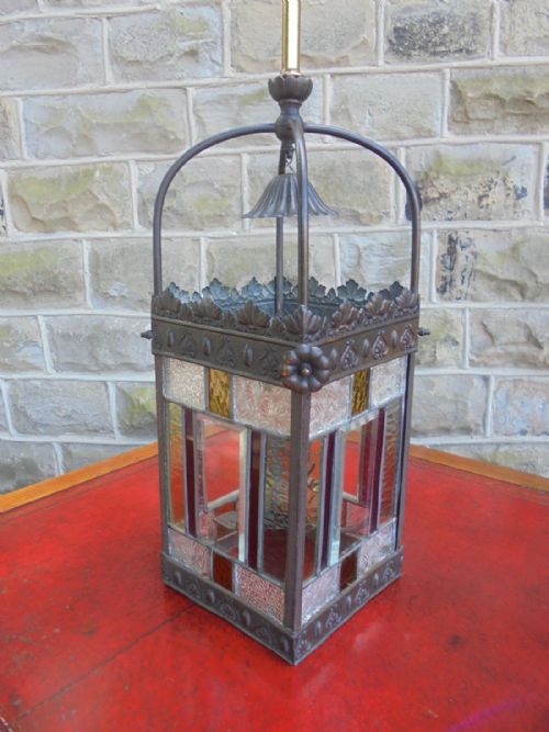 Antique Brass & Coloured Glass Hanging Lantern