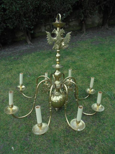 Antique Brass Dutch style 8 Branch Chandelier Light Fitting c.1910 (1 of 1)
