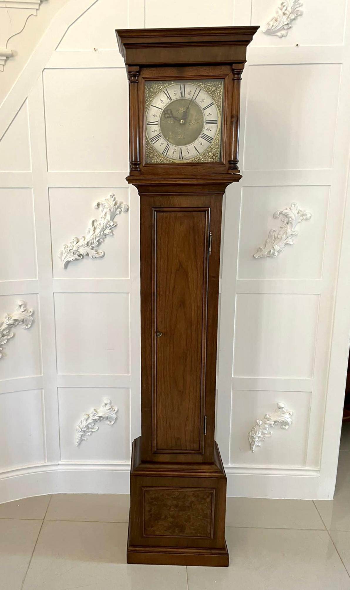 Antique Brass Face Quality Walnut Longcase Clock by George Rice of Rudgely