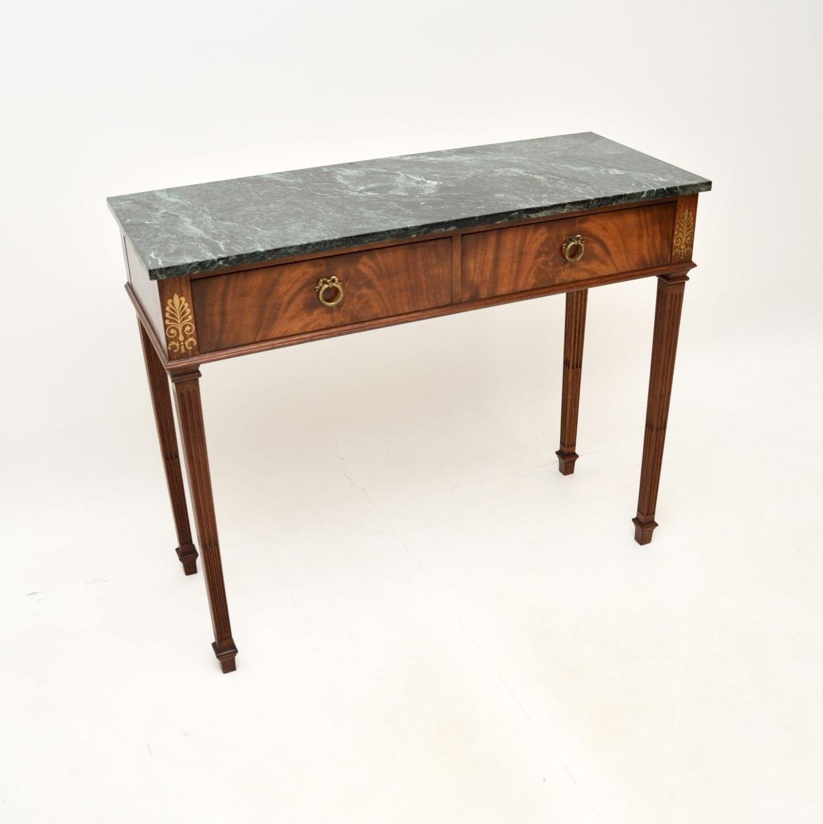 Antique Brass Inlaid Mahogany Marble Top Console Table (1 of 8)
