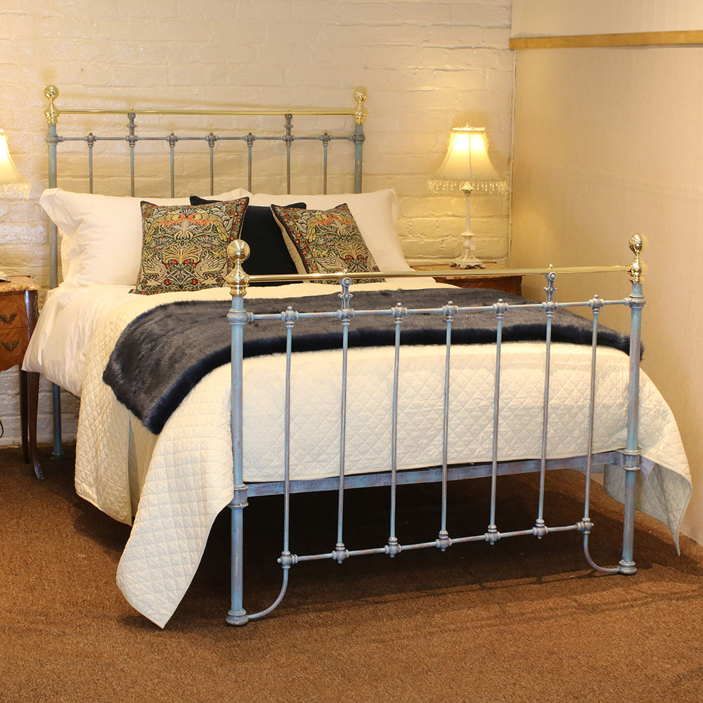 Antique Brass & Iron Bed in Blue Verdigris c.1895