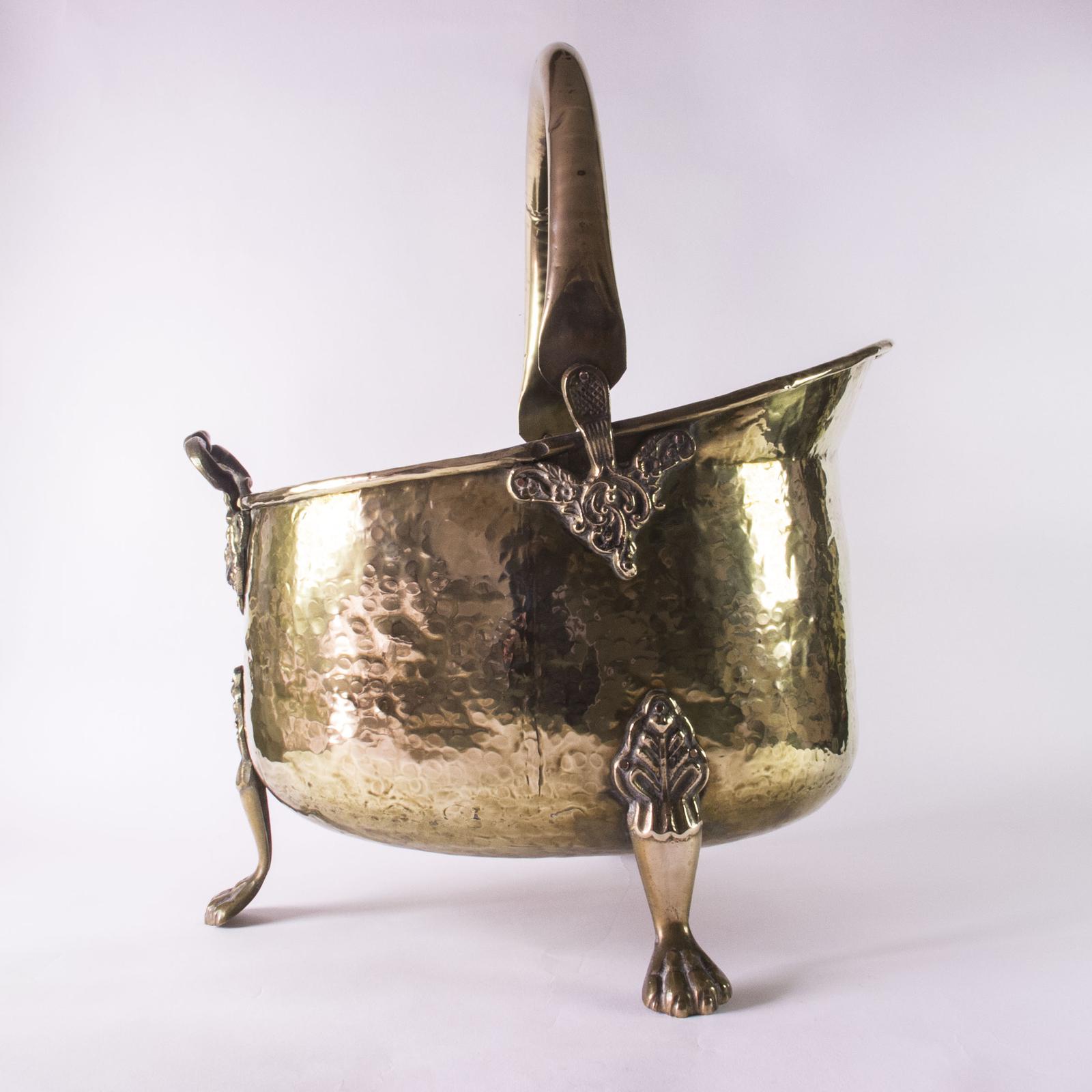 Antique Brass Lion Paw Footed Coal Scuttle