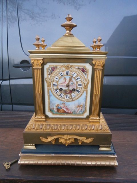 Antique Brass & Porcelain Mantle Clock c.1880