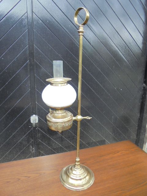 Antique Brass Rise & Fall Desk Oil Lamp c.1900