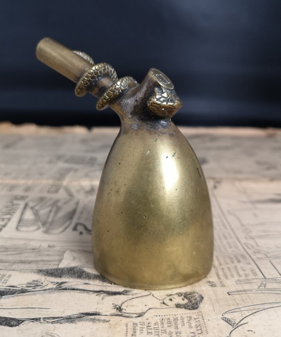 Antique Brass Snake & Pipe Table Bell, Scarce English Victorian Novelty Bell