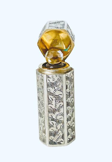 Antique Bright Cut Solid Silver Perfume Scent Bottle Birmingham 1889