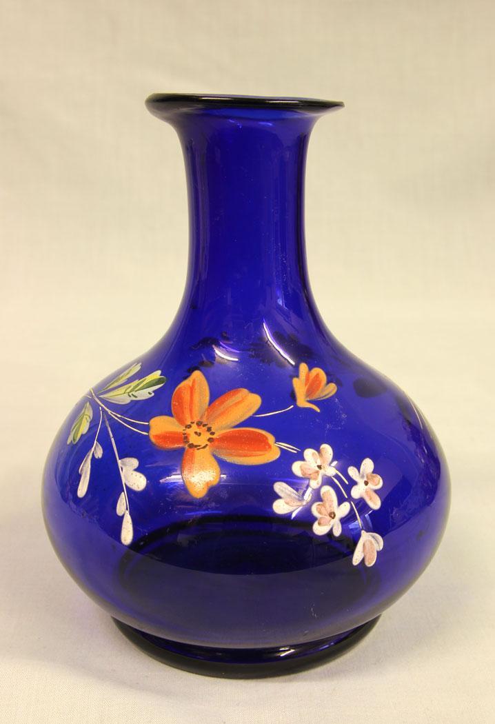 Antique Bristol Blue Decorated Glass Vase (1 of 5)