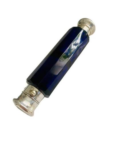 Antique Bristol Blue Double Ended Perfume Scent Bottle Silver Lids Circa 1880