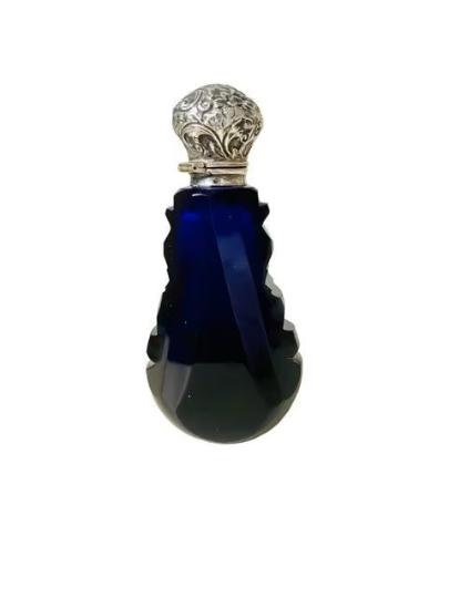 Antique Bristol Blue Perfume Scent Bottle Sterling Silver Lid c.1880