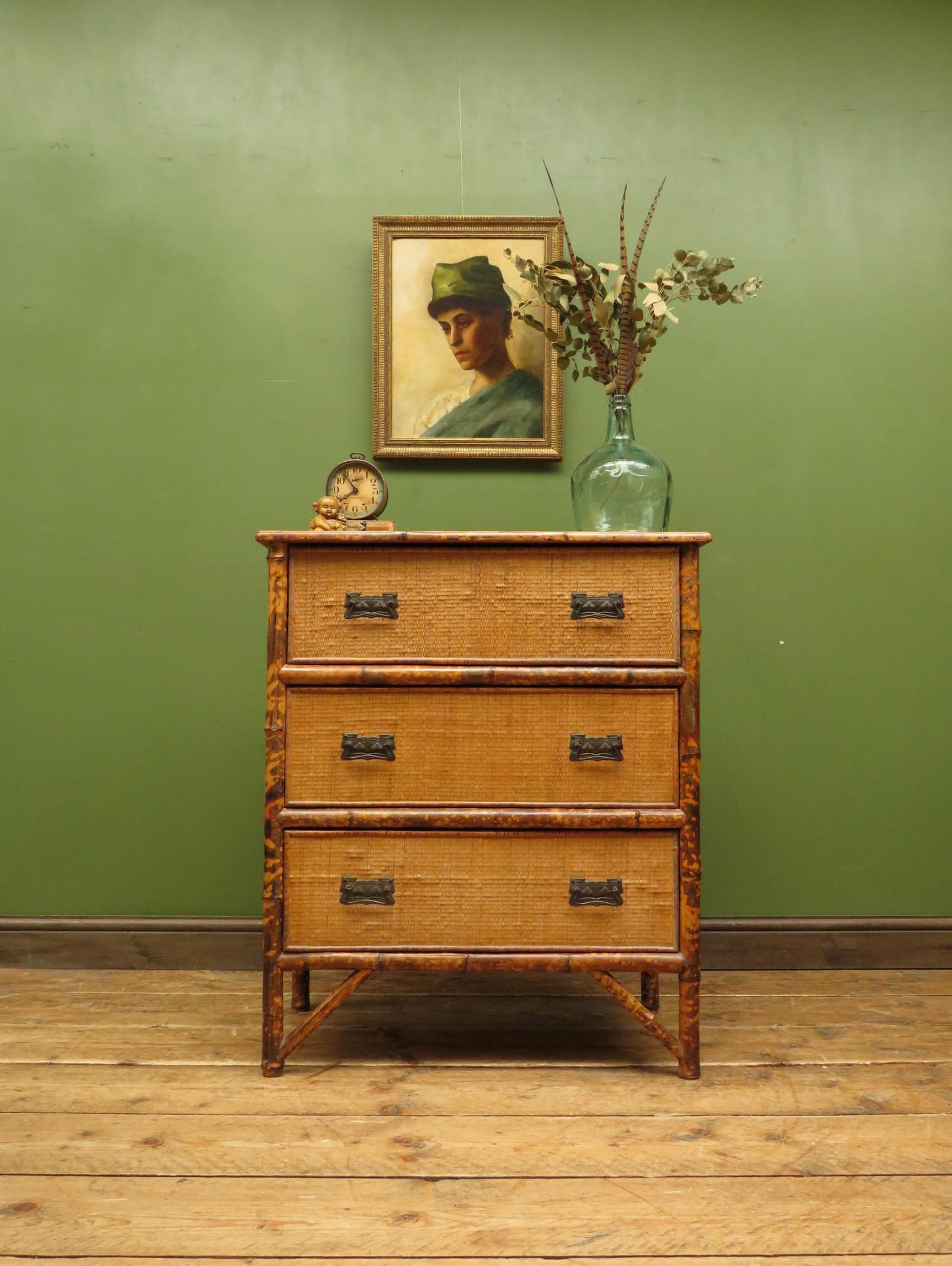 Antique British Colonial Bamboo Chest of Drawers
