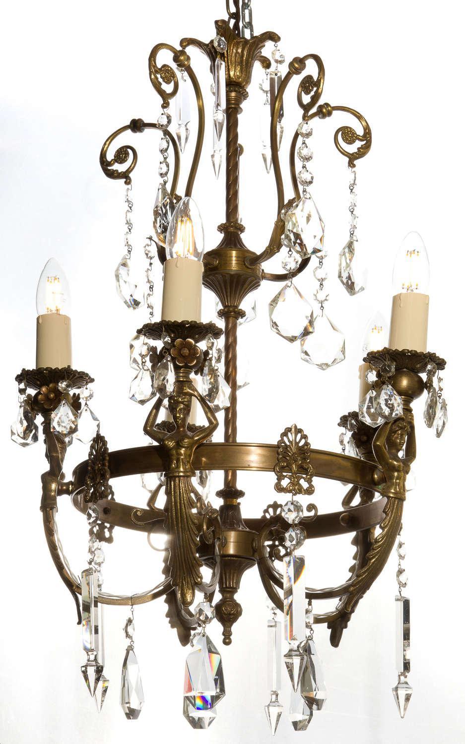 Antique Bronze French Figural 5 Light Chandelier (1 of 7)