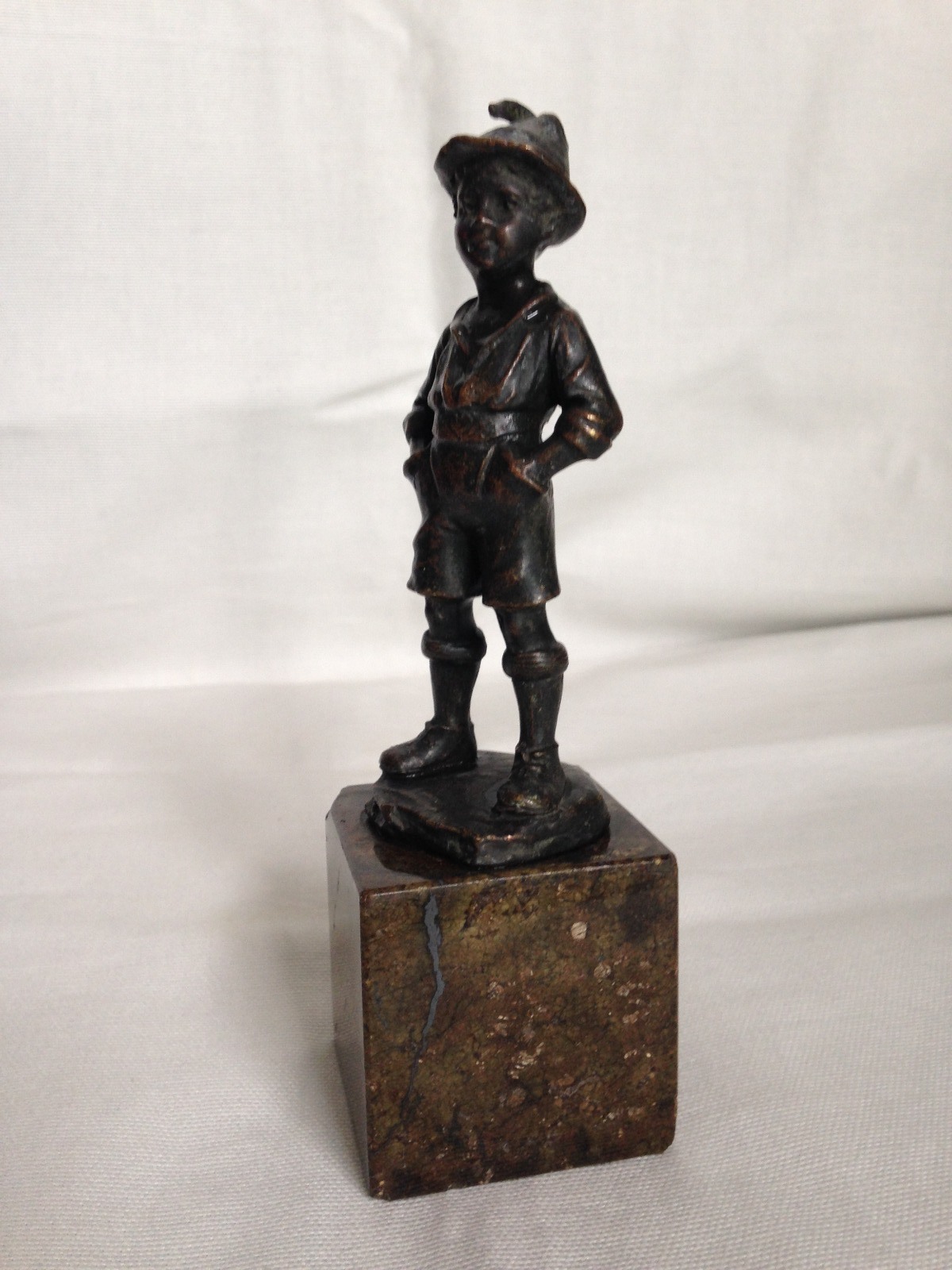 Antique Bronze Sculpture Paperweight- Boy Peter Pan Signed by Listed Hans Keck
