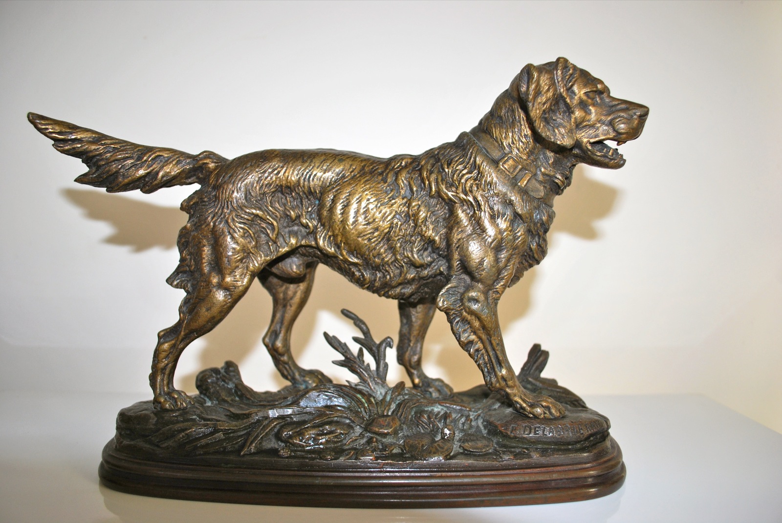 Antique Bronze Statue of Hunting Dog by Paul Edouard Delabrierre