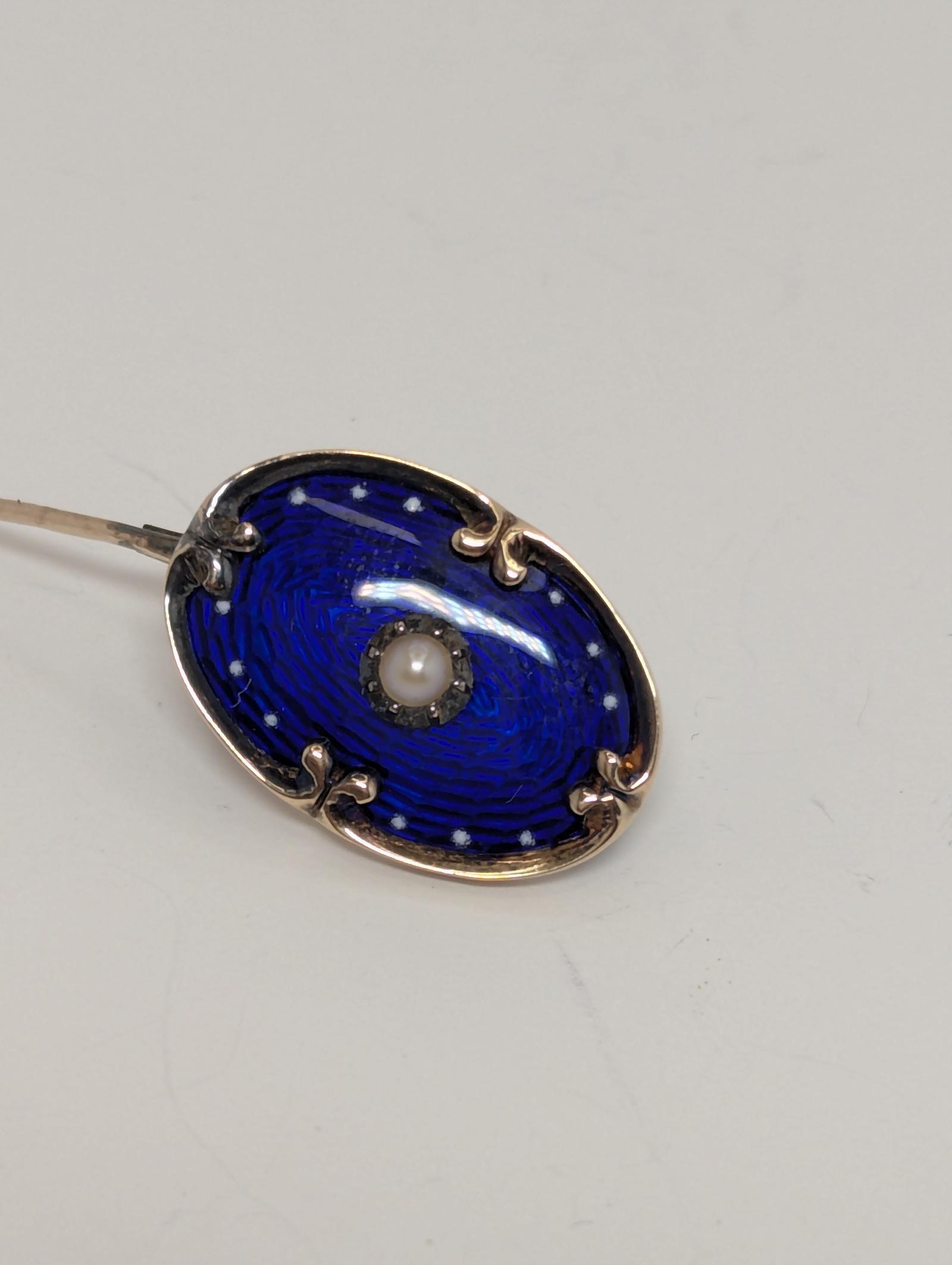 This Antique Brooch Featuring 15ct Gold, Blue Enamel & Pearl is located in Somerset, United Kingdom