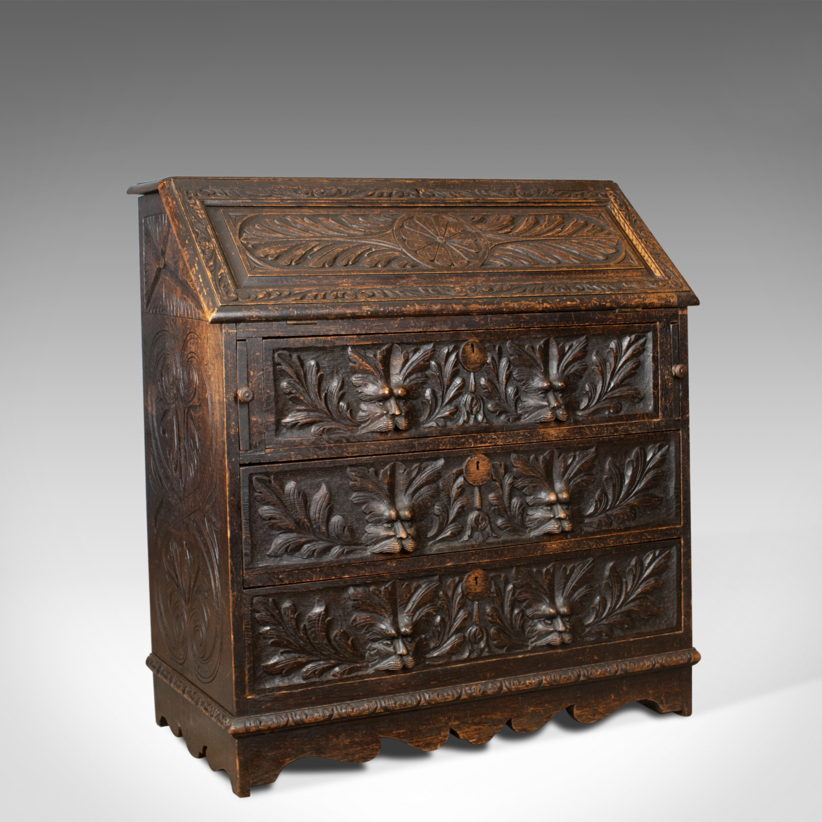 Antique Bureau, English, Oak, Victorian, Green Man, Writing Desk c.1880 (1 of 1)