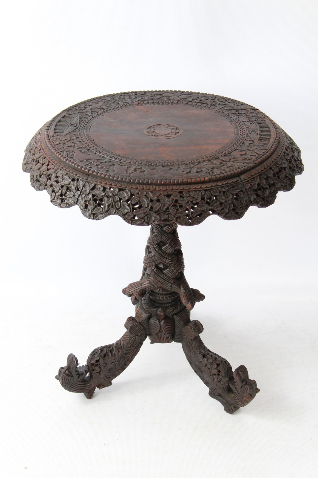 Antique Burmese Carved Rosewood Tilt-Top Side Table