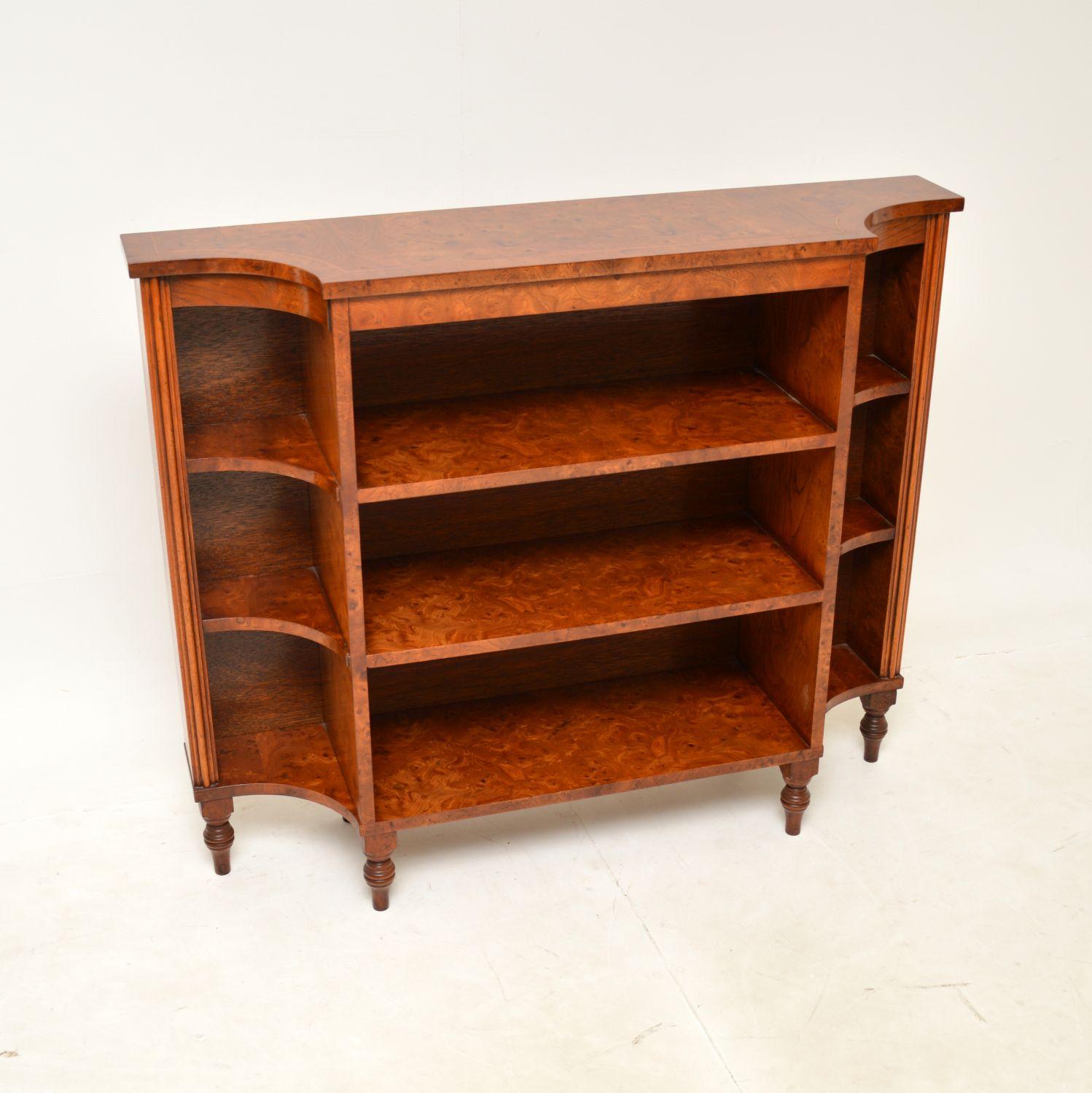 Antique Burr Elm Breakfront Open Bookcase (1 of 11)