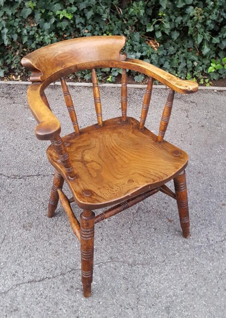Antique Burr Elm Smokers Bow Captains Chair