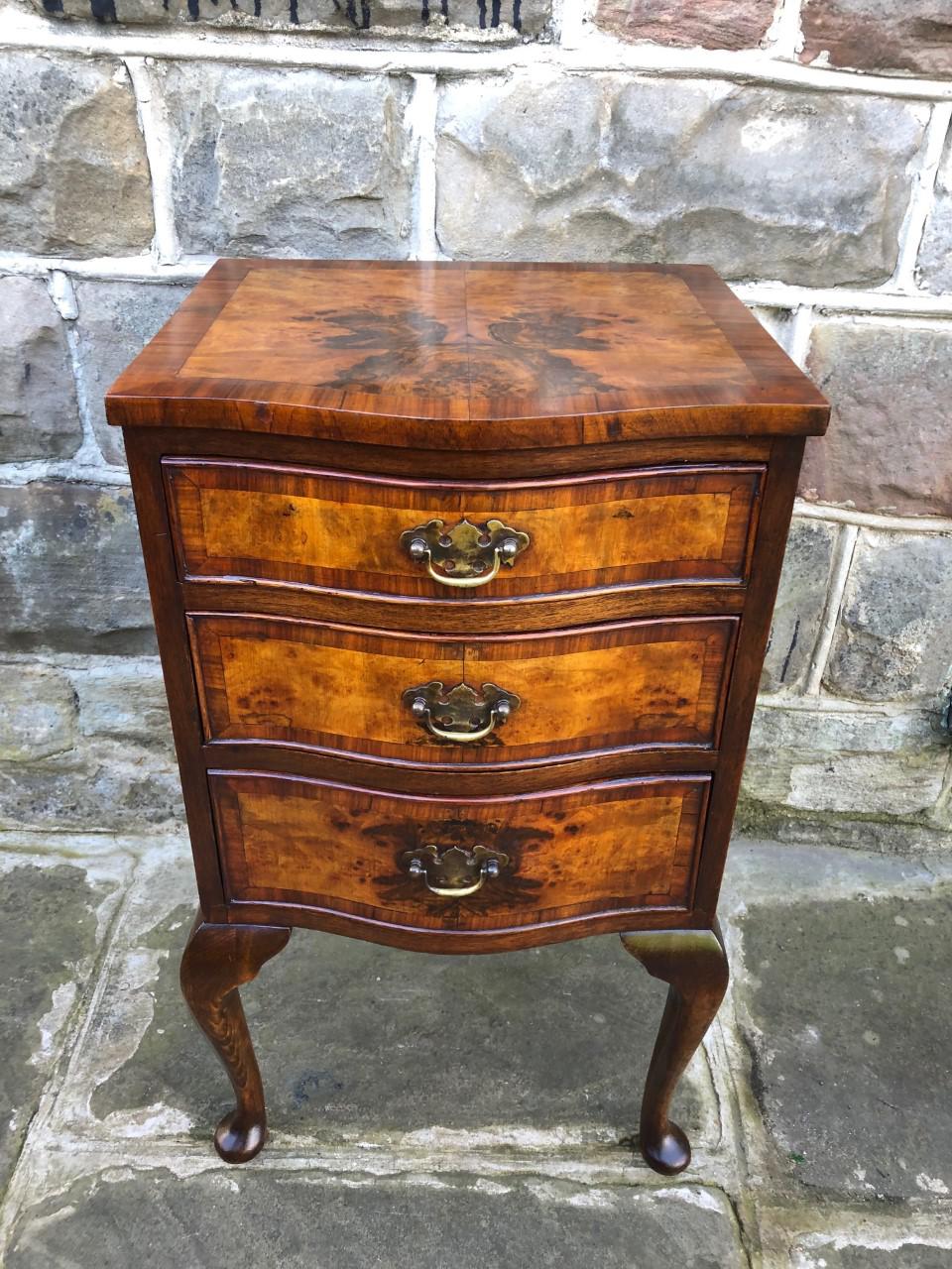 Antique Burr Walnut 3 Drawer Bedside Chest