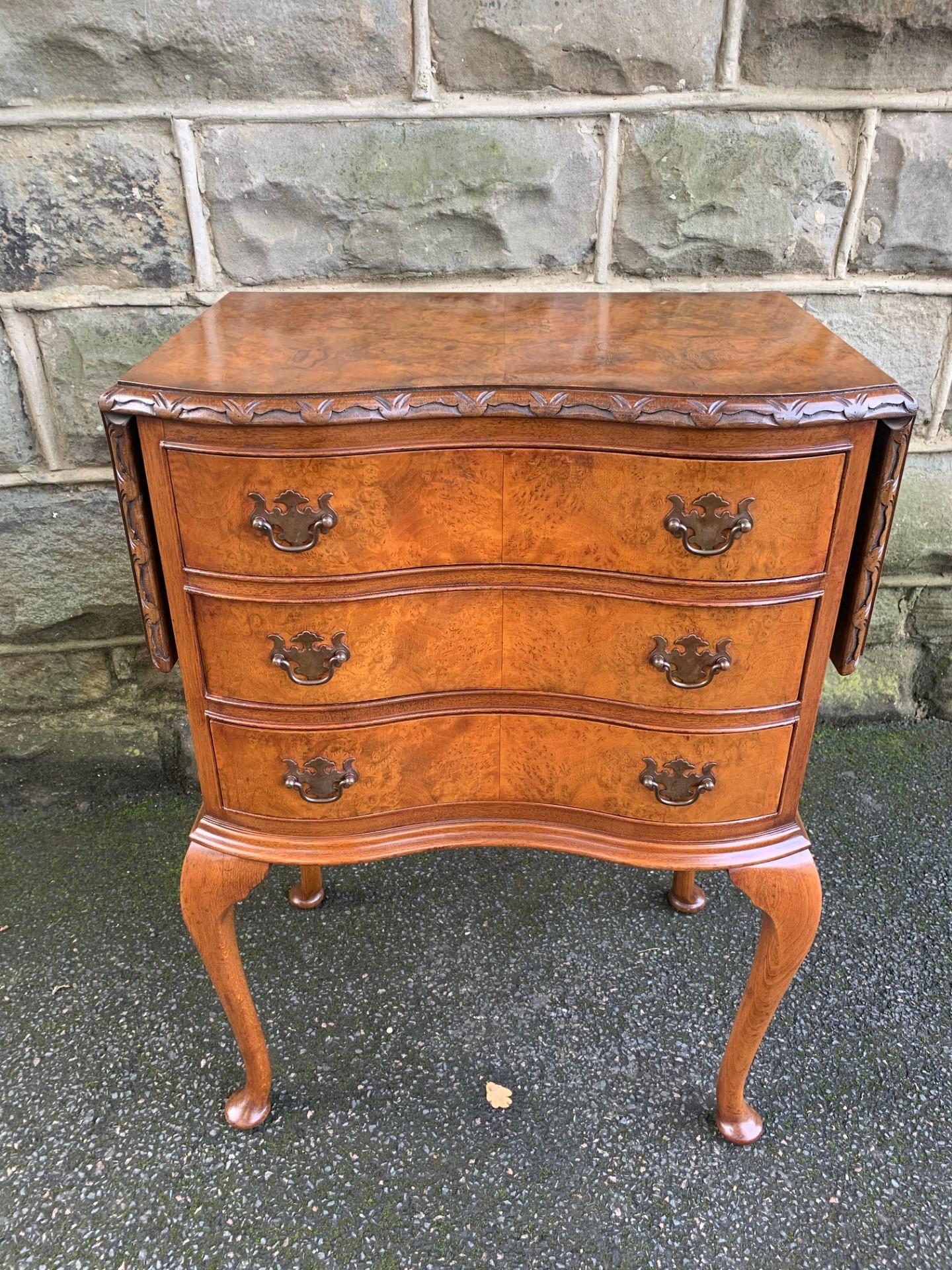 Antique Burr Walnut 3 Drawer Bedside Chest
