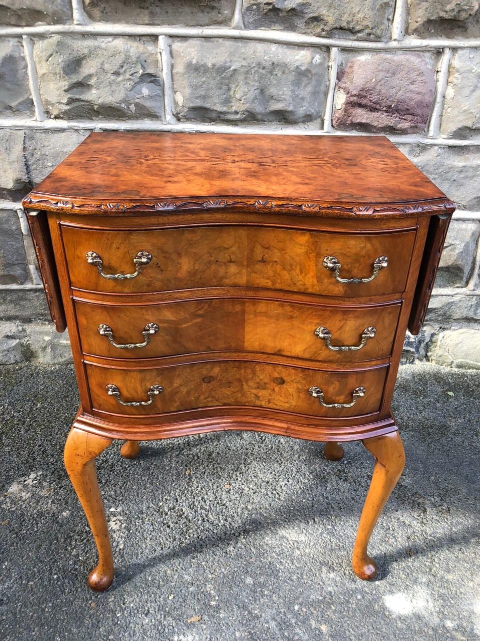 Antique Burr Walnut 3 Drawer Bedside Table/ Chest of Drawers