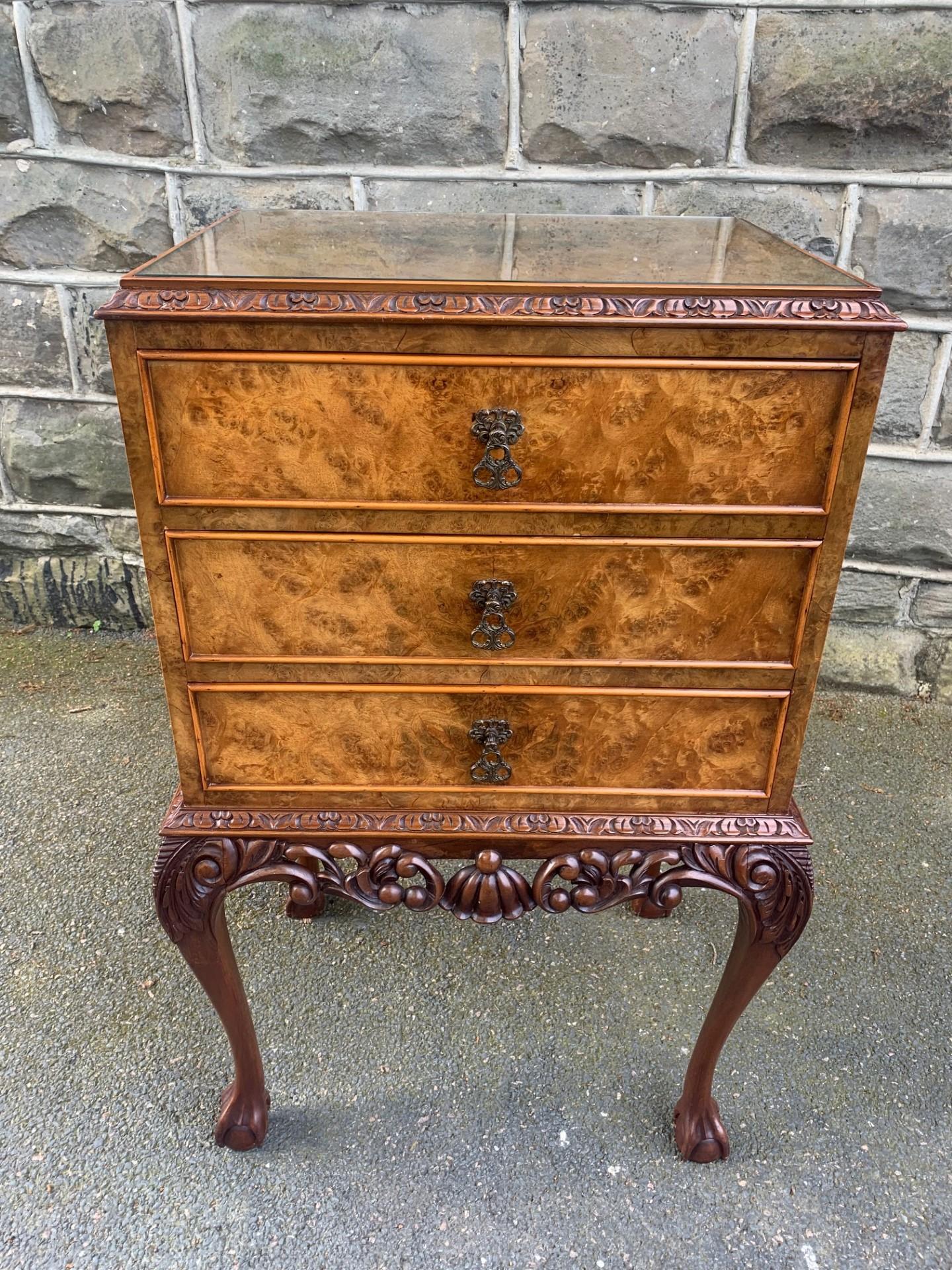 Antique Burr Walnut 3 Drawer Chest of Drawers