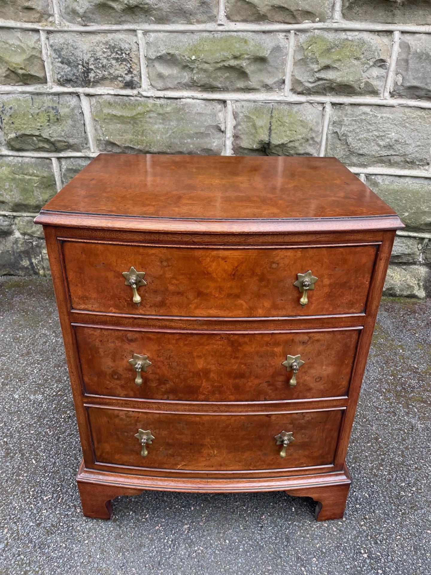 Antique Burr Walnut Bow Front Bedside Chest of Drawers