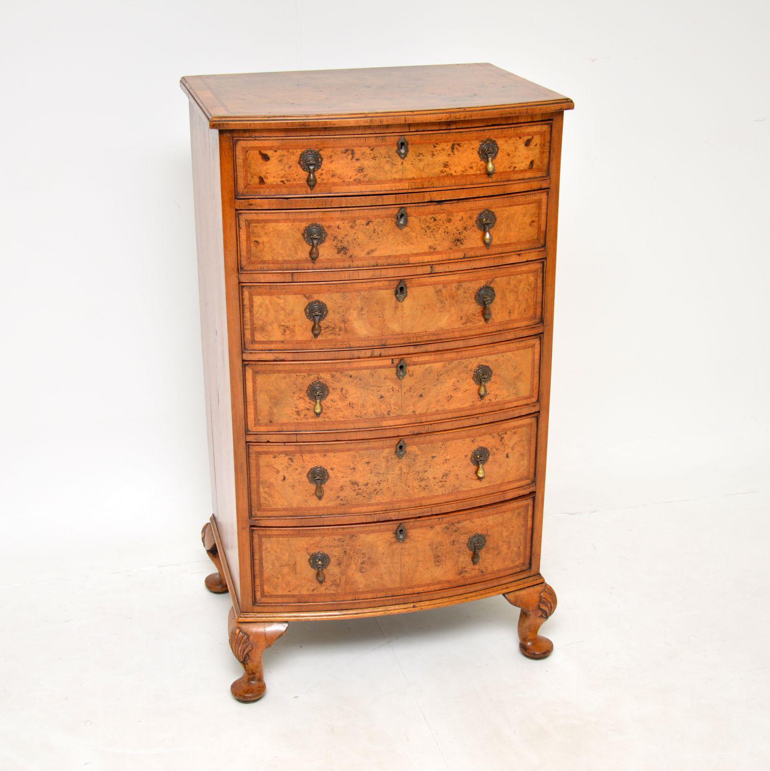 Antique Burr Walnut Bow Front Chest of Drawers