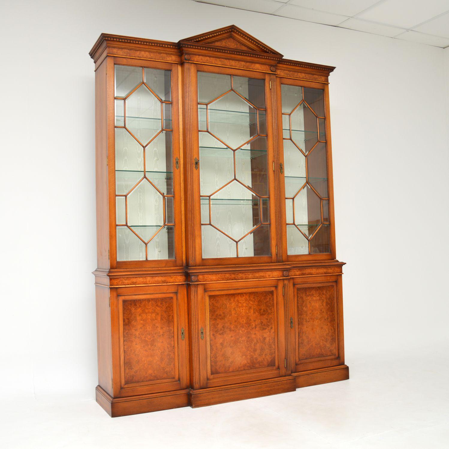 Antique Burr Walnut Breakfront Bookcase / Display Cabinet