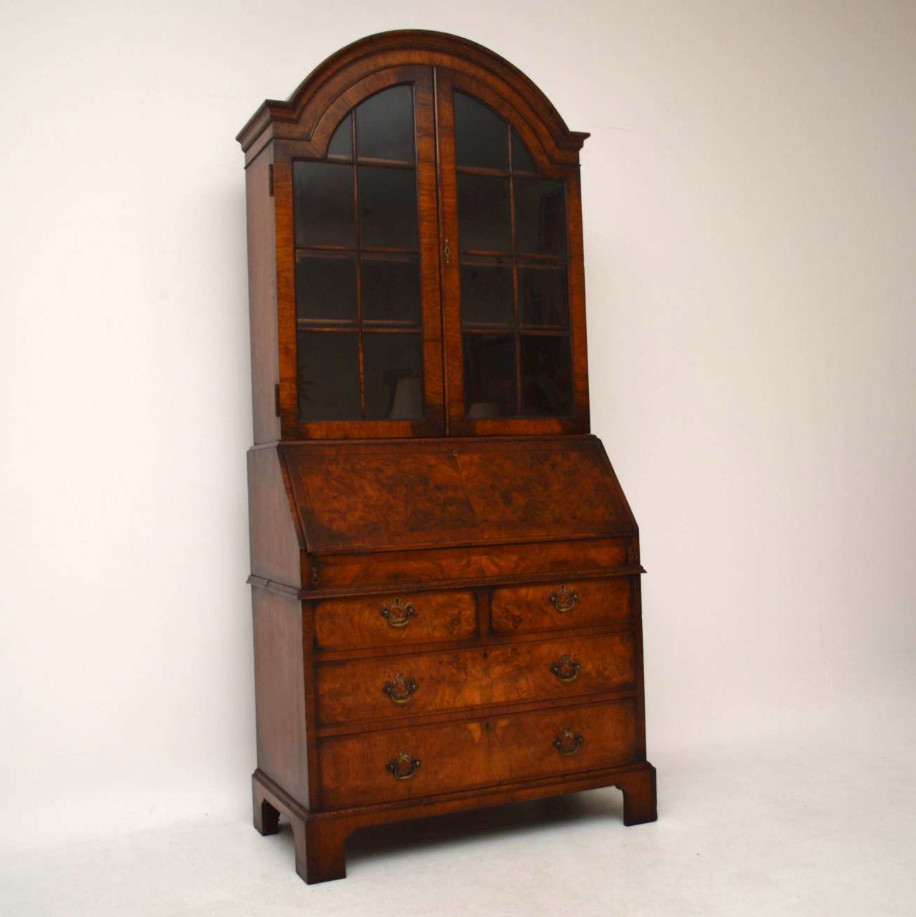 Antique Burr Walnut Bureau Bookcase c.1910