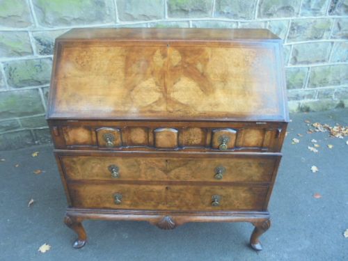Antique Burr Walnut Bureau on Stand by Maple & Co