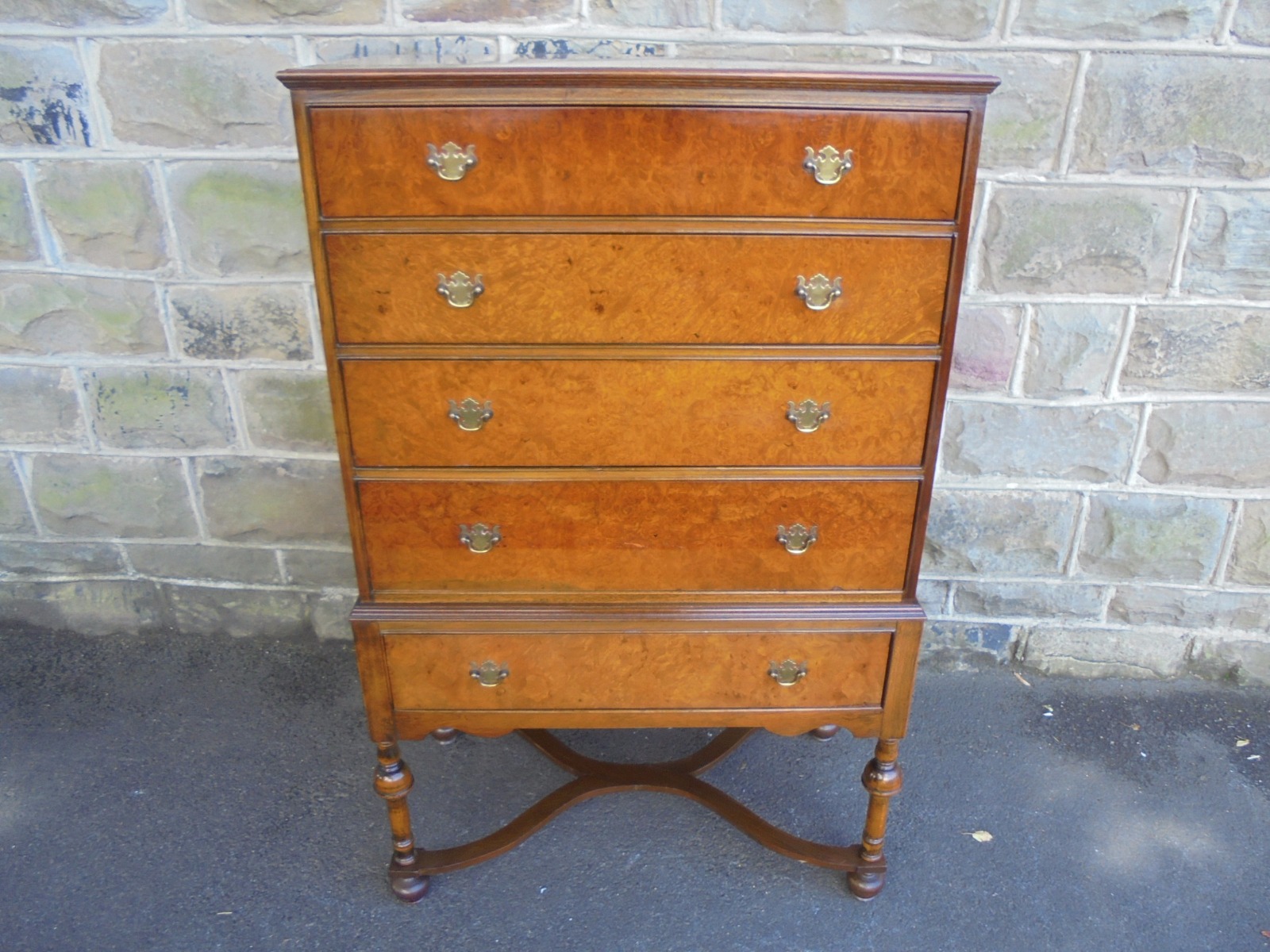 Antique Burr Walnut Chest of Drawers on Stand c.1910