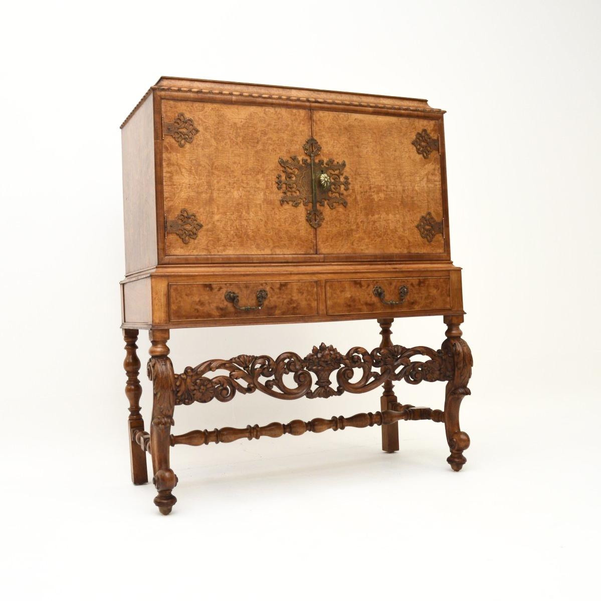 Antique Burr Walnut Cocktail Drinks Cabinet