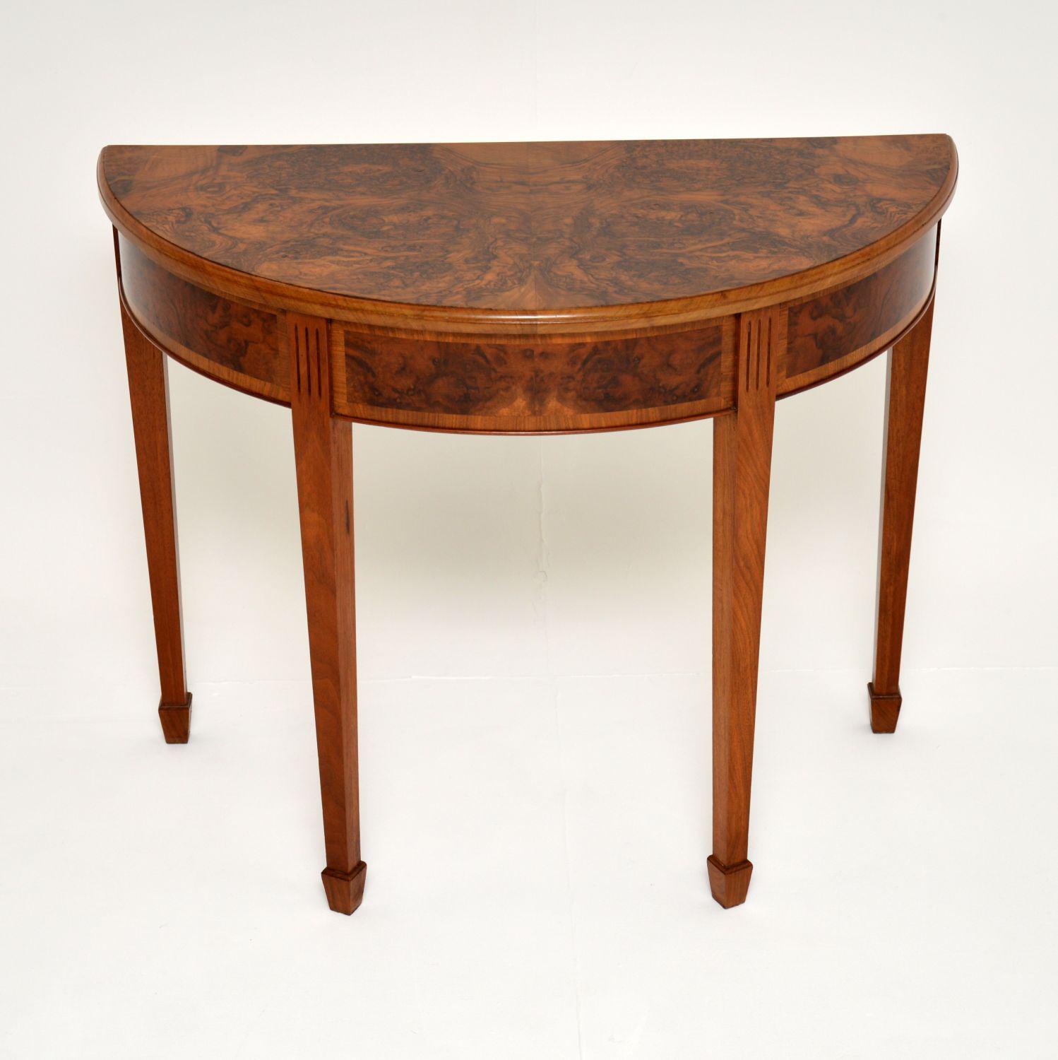 Antique Burr Walnut Demi Lune Console Table (1 of 8)