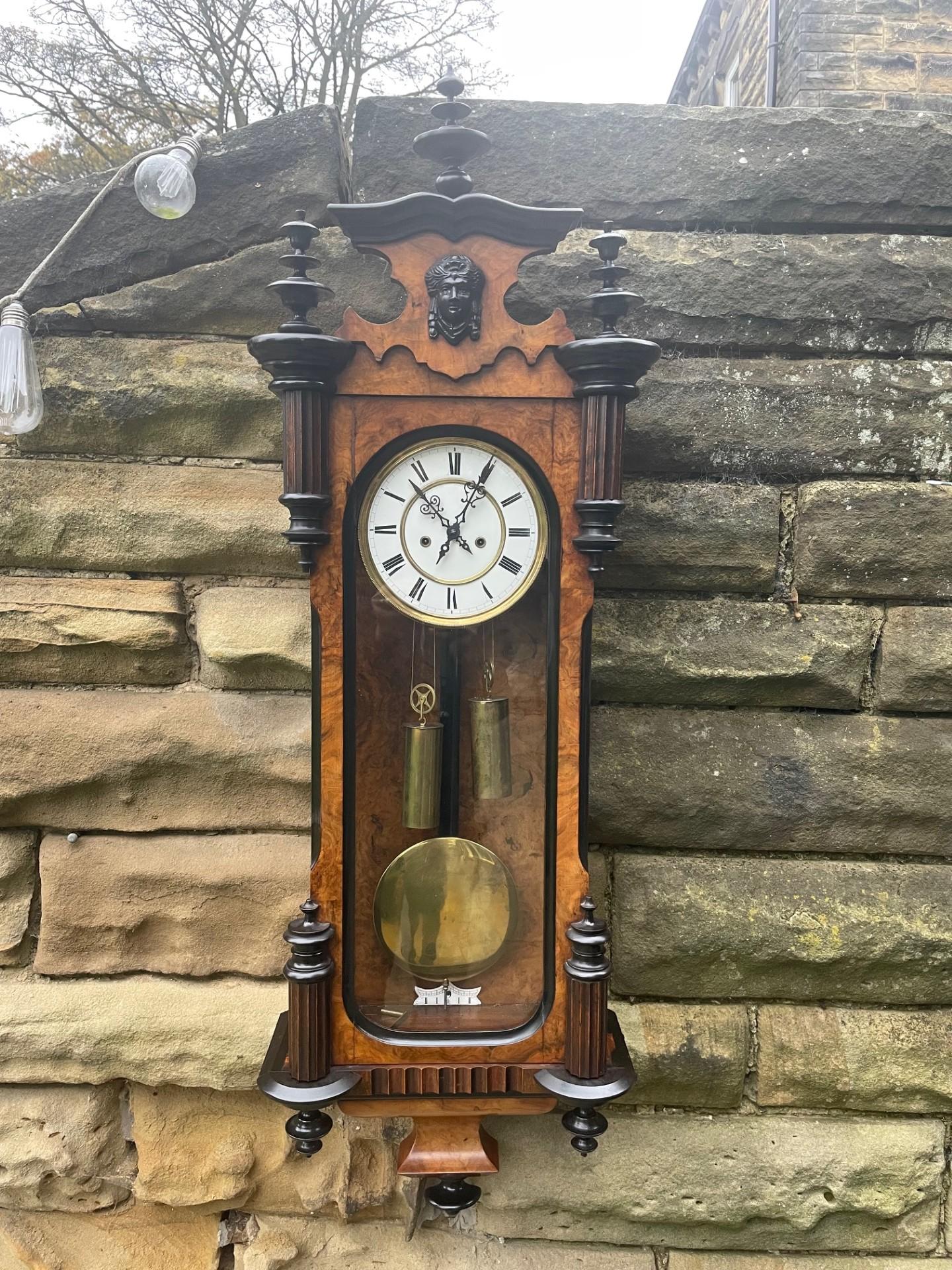 Antique Burr Walnut Double Weight Vienna Wall Clock (1 of 14)
