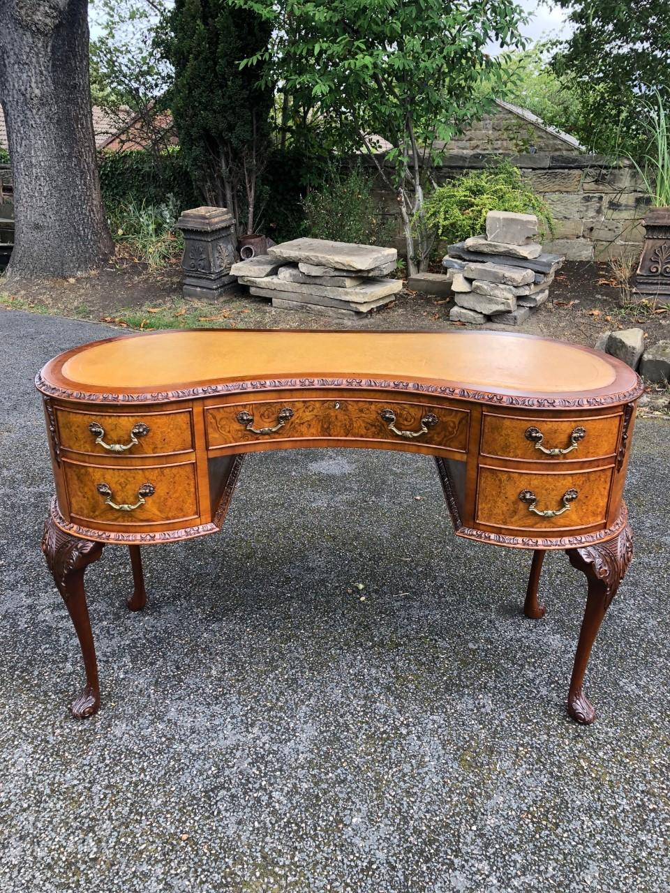 Antique Burr Walnut Kidney Shaped Writing Desk