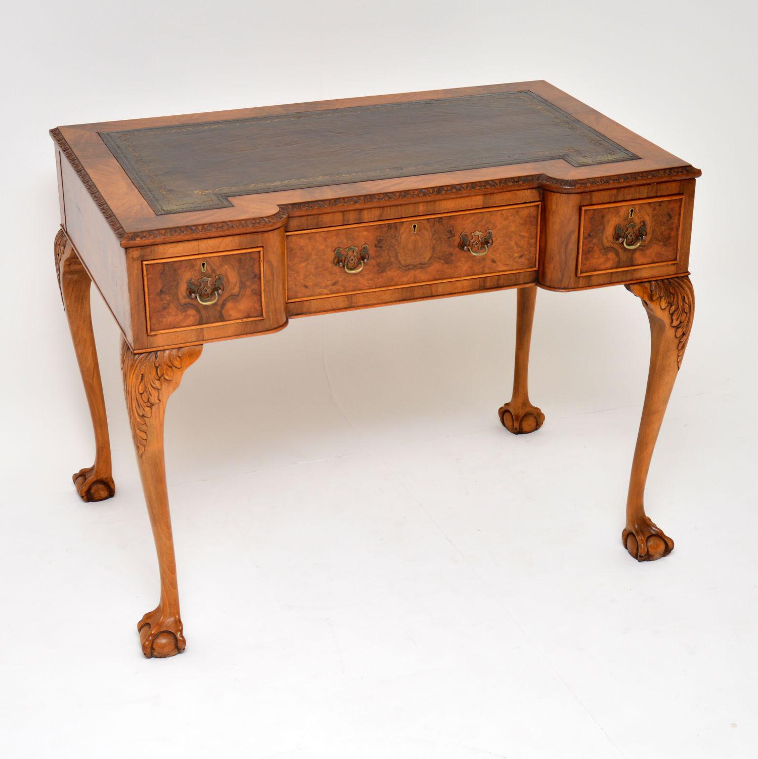 Antique Burr Walnut Leather Top Desk