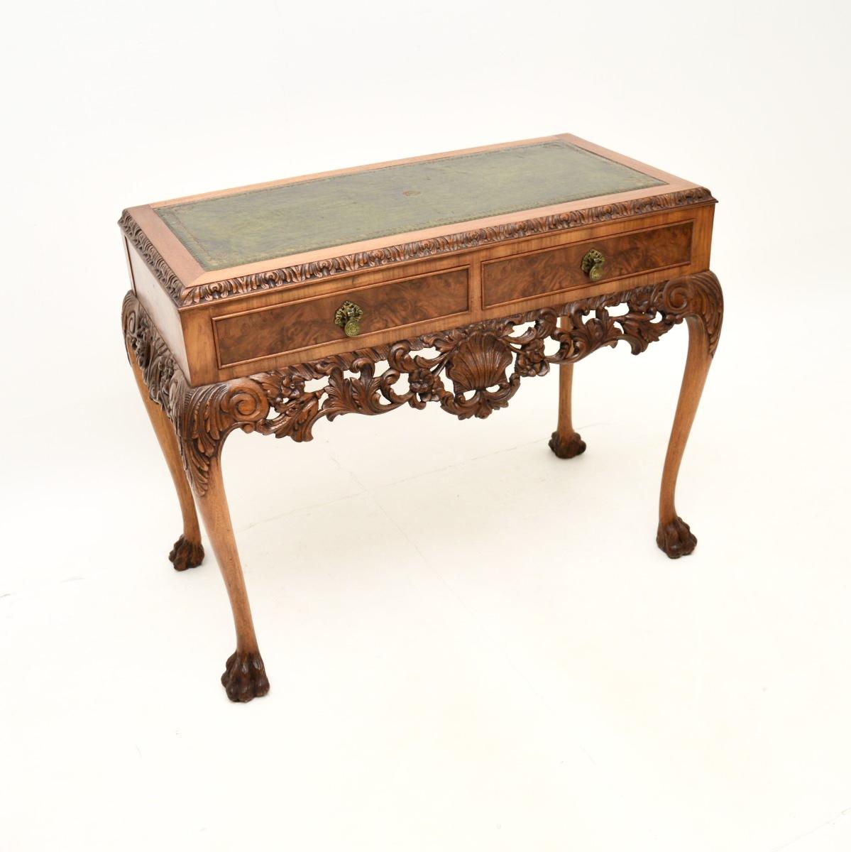 Antique Burr Walnut Leather Top Side Table (1 of 10)